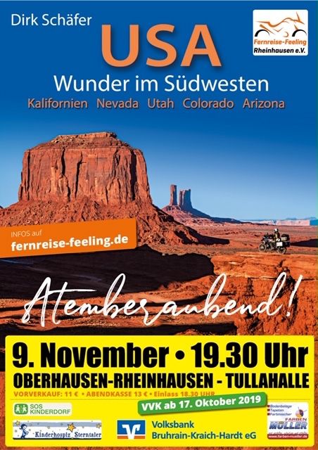 das Fernreise Feeling 2019 steht vor der Tür und wir sind schon seit geraumer Zeit in der Vorbereitungsphase. Da wir Dirk Schäfer mit einem Vortrag über seine Reise durch die Canyonlands im Südwesten der USA zu Gast haben sind wir eifrig am Ausprobieren, was wir Euch spezifisches zm Reiseland anbieten können. Da liegen natürlich Hamburger nahe, wir arbeiten noch daran, das ist gar nicht so einfach wie es auf den ersten Blick scheint. Egal, wir werden sehen auf jeden Fall könnt Ihr Euch auf einen unterhaltsamen Samstag Abend freuen der die Sportschau um Längen schlägt.