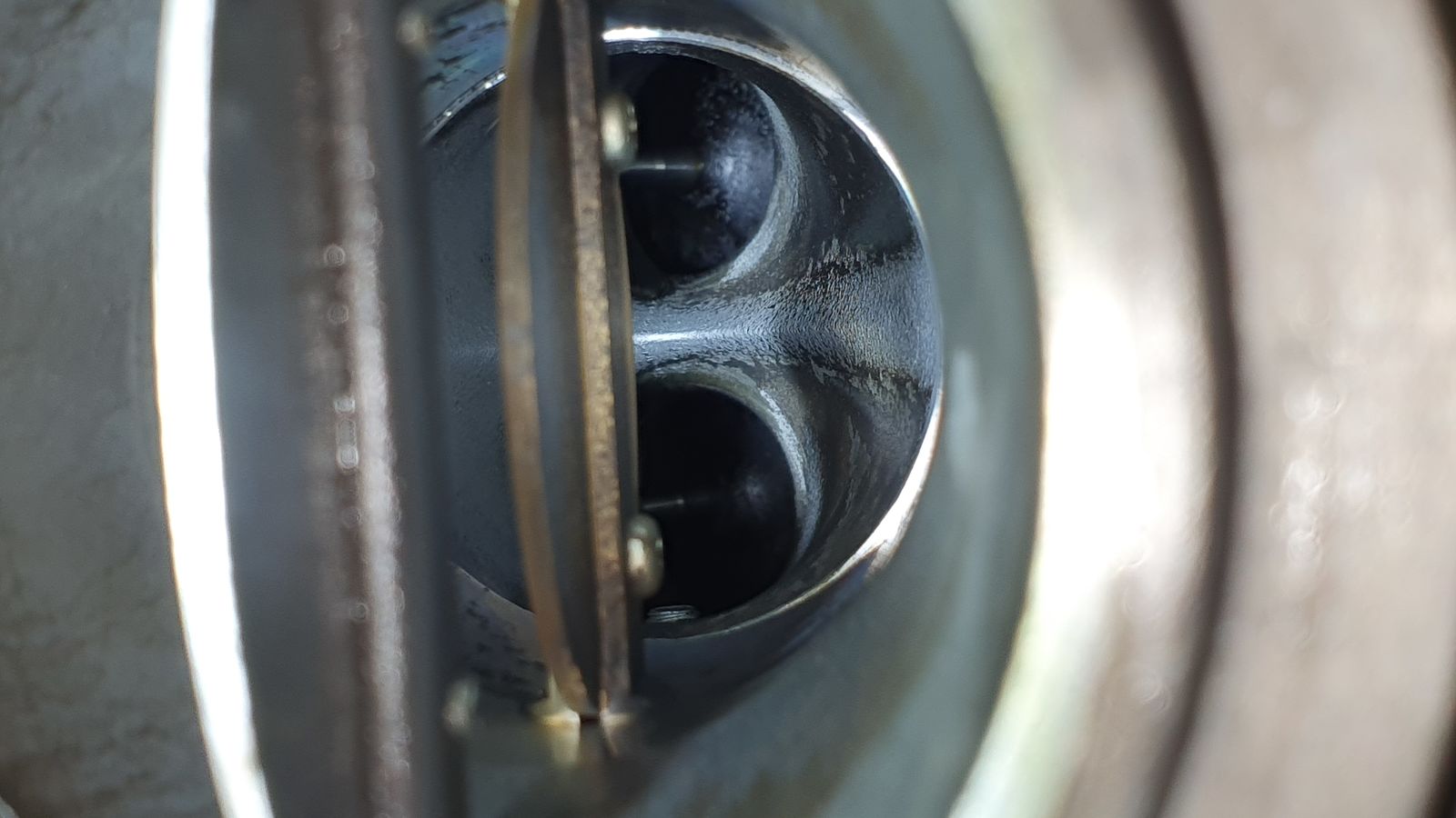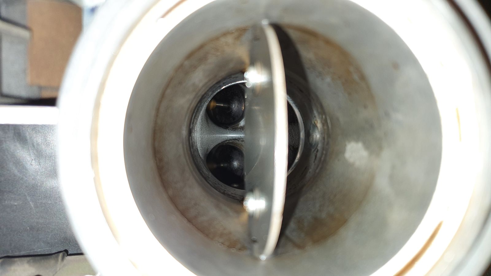 Servus! Ich hänge mich hier mal rein... Nachdem ich die Bilder hiwr gesehen habe und bei mir ja CO-Werte von 4,xx aufgefallen sind, habe ich mir meine (Einlass) Ventile auch mal angesehen. Beide Einlasskanäle sehen ähnlich ölig aus. Ventile vo. und hi. verkokst. Luffi ist sauber.