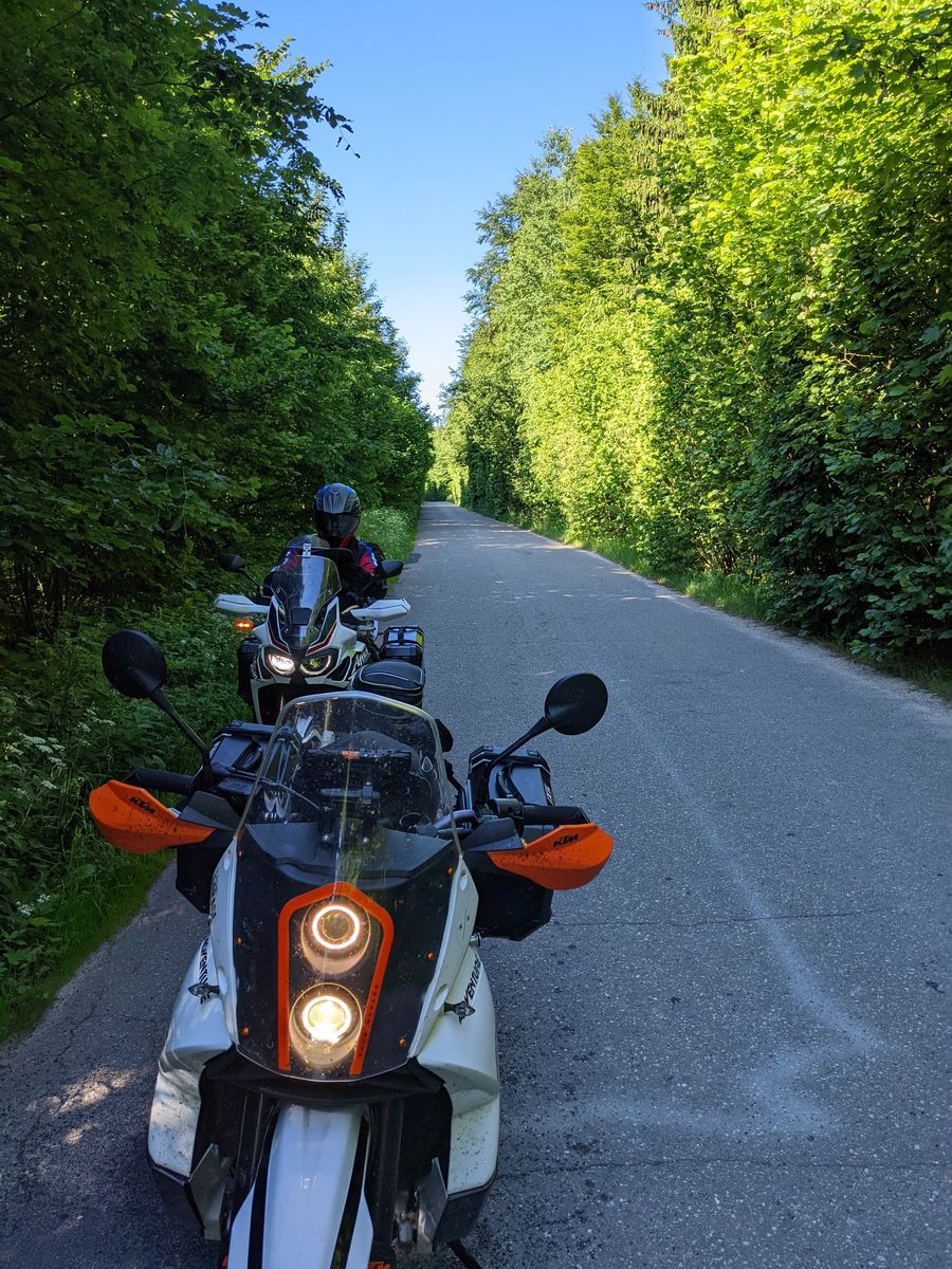 Wir,Affentwin 1000 und LC8,sind von Osnabrück über die Mecklenburgische Seenplatte in den Nordosten Polens quer durch die Masuren über kleine Strassen,Feld und Schotterwege zum Dreiländereck Polen,Litauen,Weissrussland gedüst.