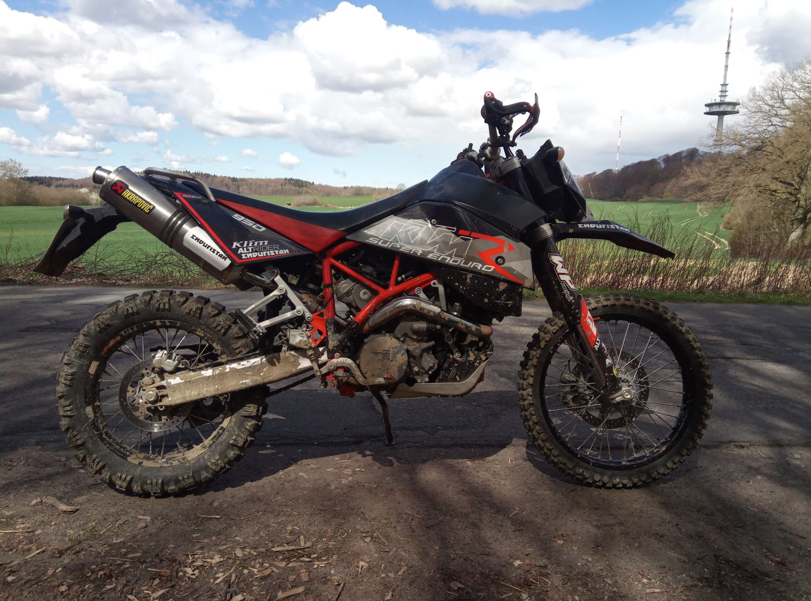 Im April diesen Jahres habe ich die gute bei einem Enduro Training bei Zitzewitz leider so weggeworfen, dass der Kühler Kaputt gegangen ist. Habe das Motorrad dann in der ansässigen KTM Werkstatt gelassen, in der Hoffnung, dass sie ihn entweder wieder löten oder tauschen. Dann nach einer Woche die schlechte Nachricht: Sie können den nicht abdichten und es gibt auch keine Ersatzkühler mehr. Sad