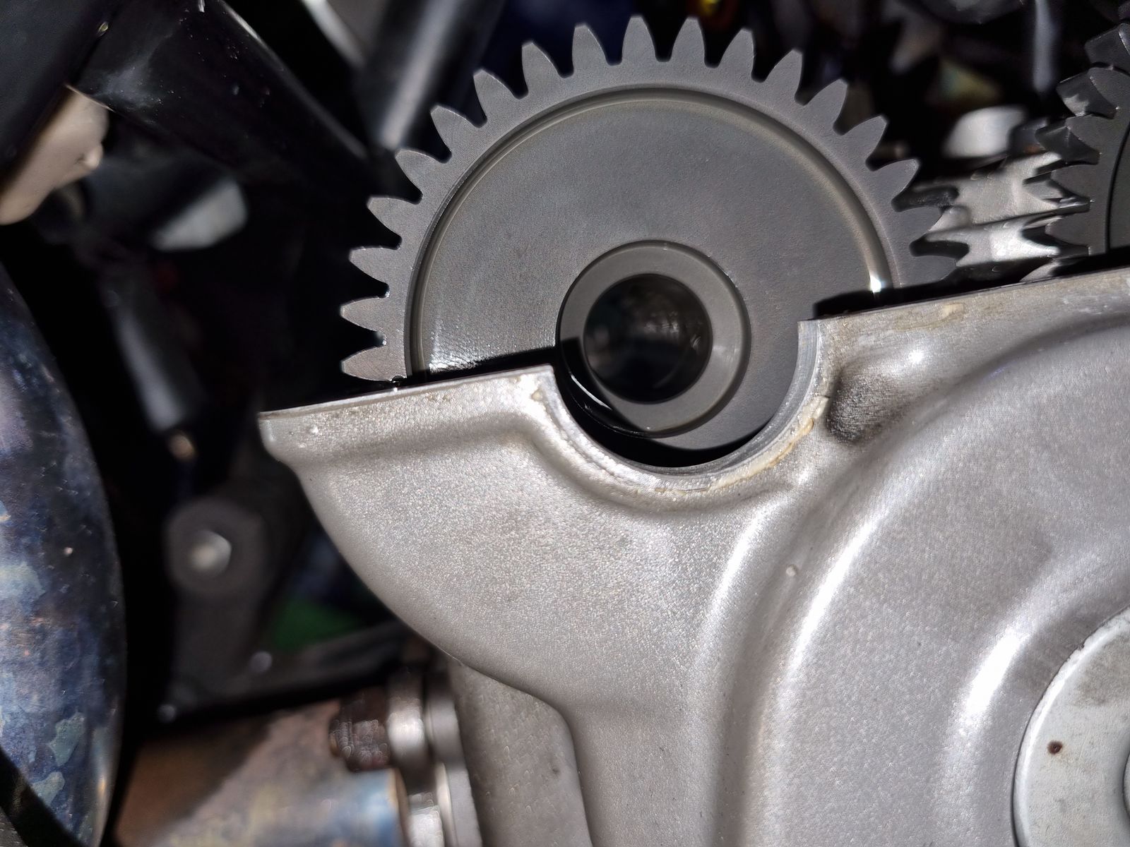 den rechten Deckel entfernt zum erneuern der WP und das Ventilspiel geprüft und eingestellt.
