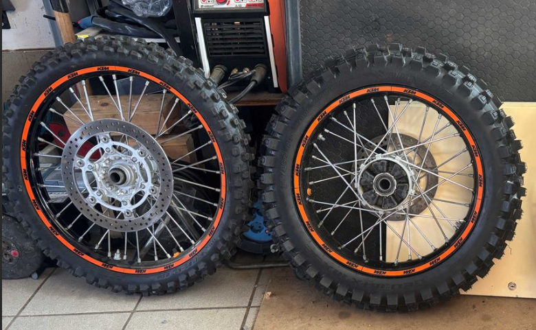 Neue Cross/Enduro Reifen, neue dicke Enduro Schläuche, Bremsscheiben etc.