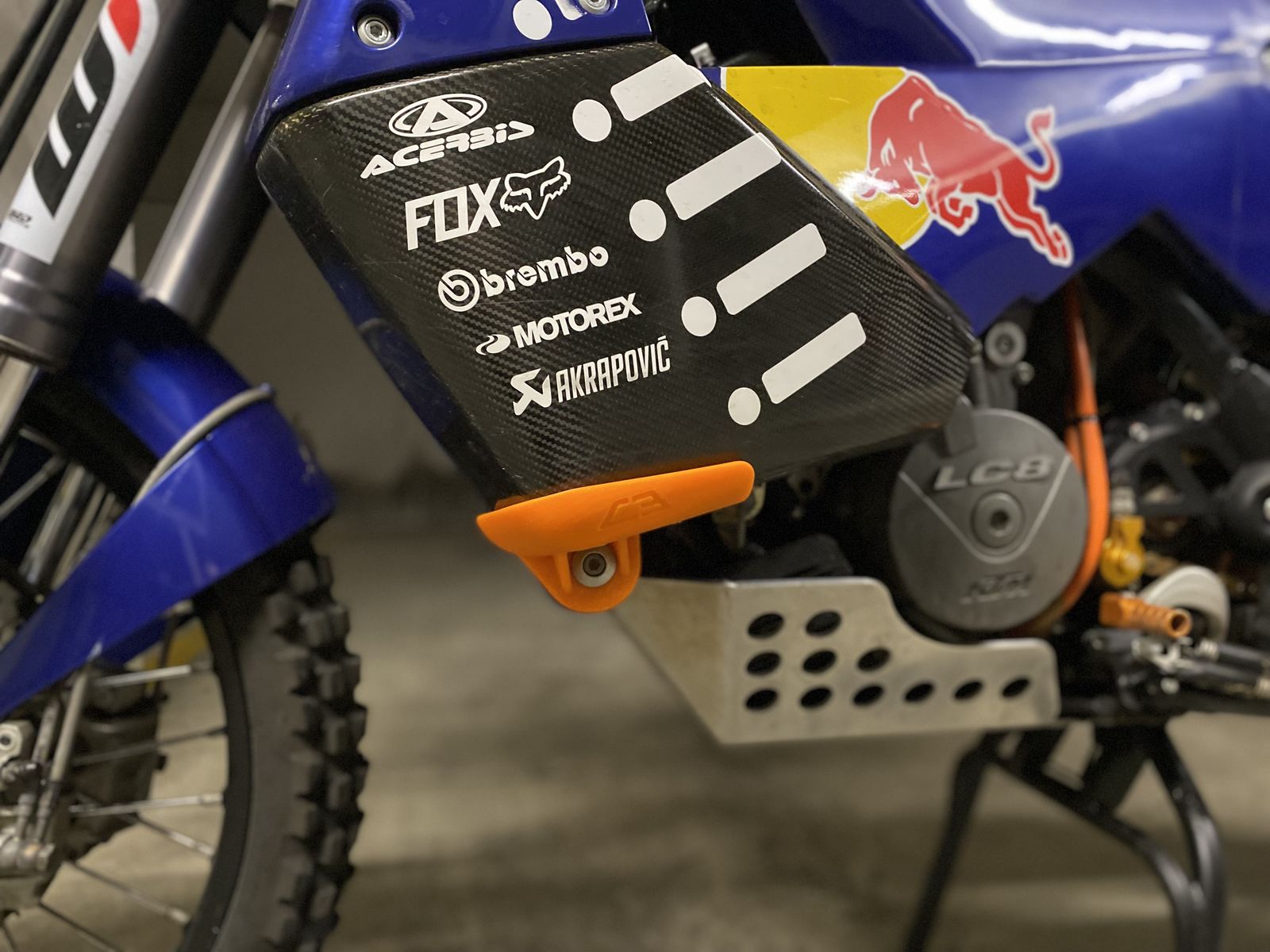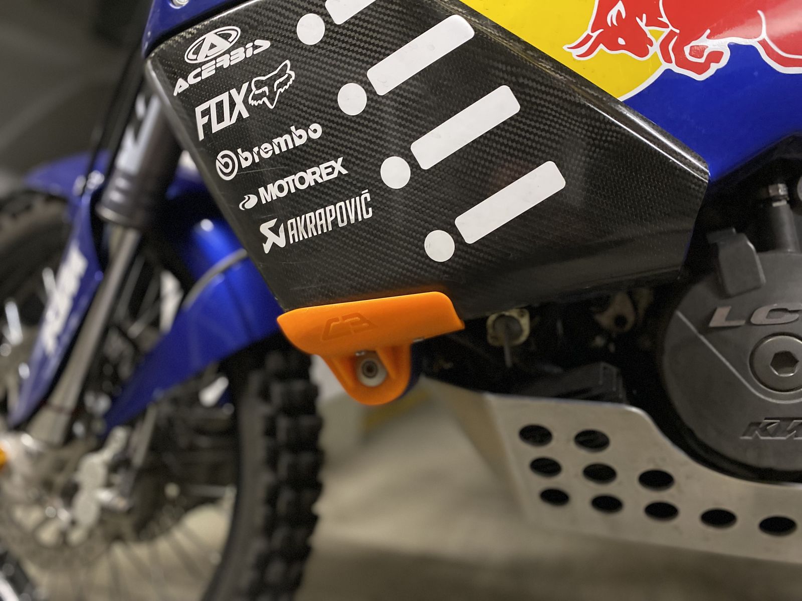 Der Druck ist mit etwa 50€ pro Teil nicht ganz so günstig aber am Ende evtl. günstiger, als neue Carbonschützer oder gar ein neuer Tank.