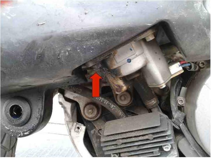 Hab die Verkleidung abgebaut und eine Schraube festgezogen (siehe Pfeil auf dem Bild). Seitdem ist es trocken unter dem Motorrad...