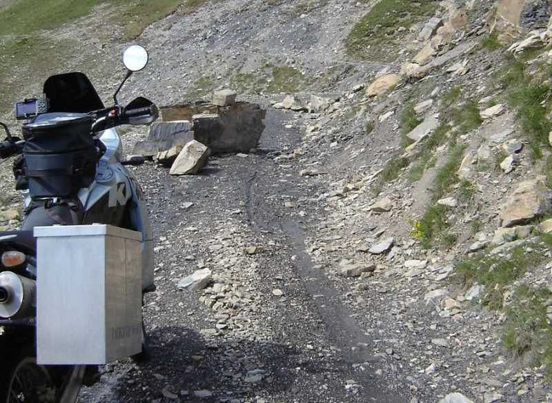 Lediglich der Tunnel am Parpaillon sollte min. zu Zweit unternommen werden, denn ich denke, daß min. noch 2 Eisfelder da sind ( waren sehr dickes Eis und sehr lang ). Wir haben zu Viert jedes Mopped einzeln über die Eisfelder bugsiert und das war schon an manchen Stellen eine ziemliche Plackerei