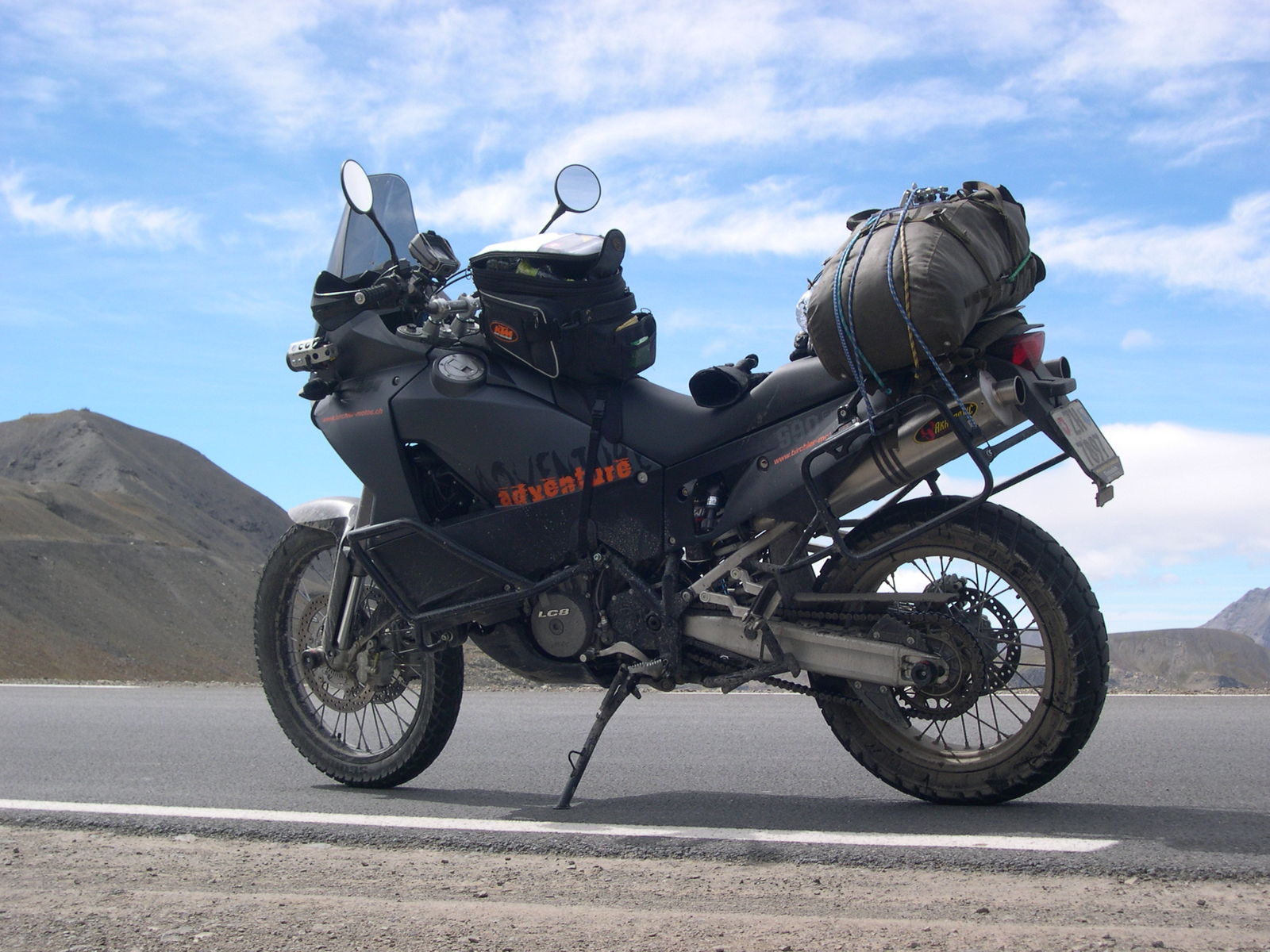 Da ich mich mit Motorrädern nie so beschäftigt hatte, dachte ich bis letztes Jahr, KTM würde nur Crosser bauen - *schäm ! - und hab immer gejammert, daß es für die AT keine vernünftige, leichtere und PS-stärkere Alternative gibt (BMW kommt us Image-Gründen für mich nicht in Frage ). Fuhr letzten Sommer dann die LC4 eines Kumpels (klasse Teil !) und der verriet mir, daß es auch eine 2-Zylinder gibt.