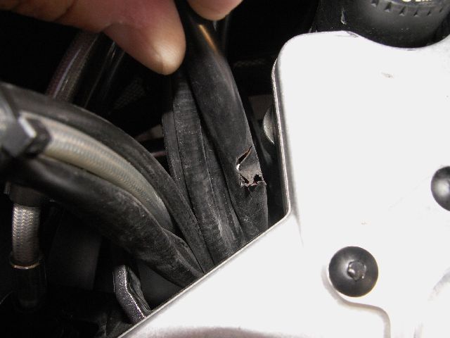 Lösung: Alle Kabel mit Klebeband bündeln, so dass das Ende der Plastikklemme nicht an einem Kabel scheuern kann.