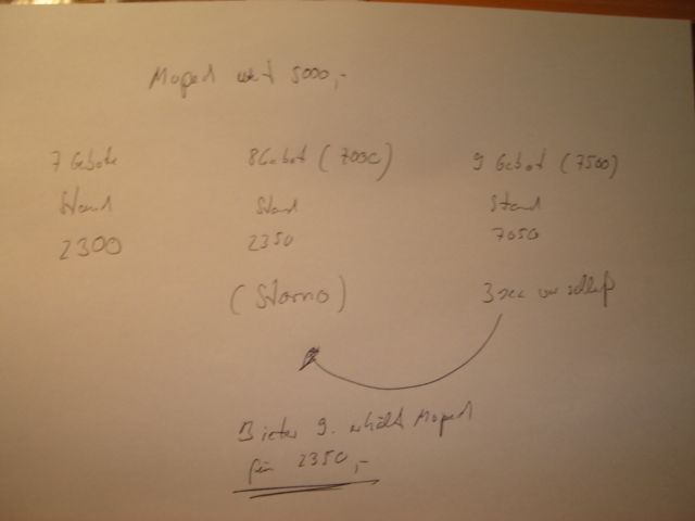 bei ebay steht ein moped mit realistischem wert von 5000 zum Verkauf ab 1 .- und ohne mindestpreis.....