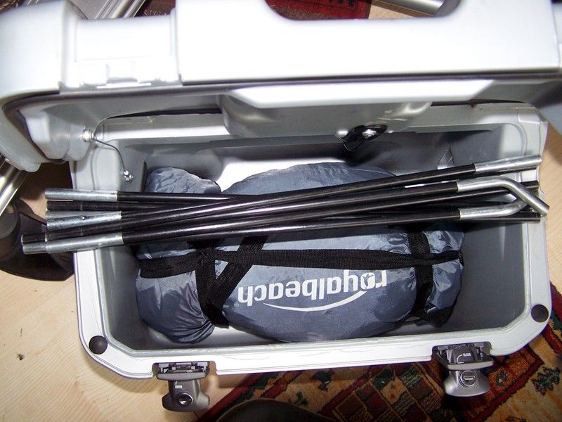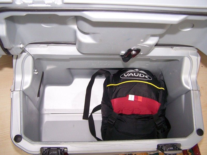 Unten ein Foto im sehr stabilen und funktionellen Kompressionssack, hab ihn mal in den Gobi-Seitenkoffer getan zum Größenvergleich. Ich lass ihn auf Tour so lange wie möglich offen und hab ihn daheim lose im Baumwollsack.