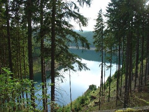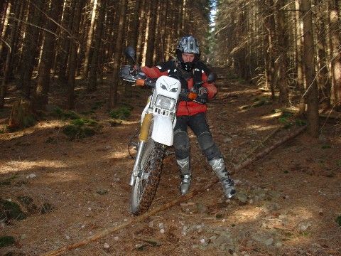 Dann einige Schotterwege parallel der A4 bevor es bei Arnstadt so richtig in den Thüringer Wald hinein ging. Die schönsten Abschnitte waren von Crawinkel nach Luisenthal und von dort weiter über die Ohratalsperre nach Steinbach-Hallenberg. Hier stellte besonders die Navigation hohe Ansprüche. Es gab selten Wege in Kompasslinie und öfter war das eigentliche Ziel plötzlich hinter uns. Die Versuche, direkte Linien auf Holzfällerschneisen oder Ähnlichem zu fahren, waren extrem abenteuerlich. Wir haben teilweise Abfahrten genommen, wo es kein zurückgegeben hätte. Zum Glück gab es immer wieder einen Pfad, der weiter führte und wir mussten kein Motorrad in Einzelteile zerlegen, um es den Berg wieder hoch zu tragen ;-)