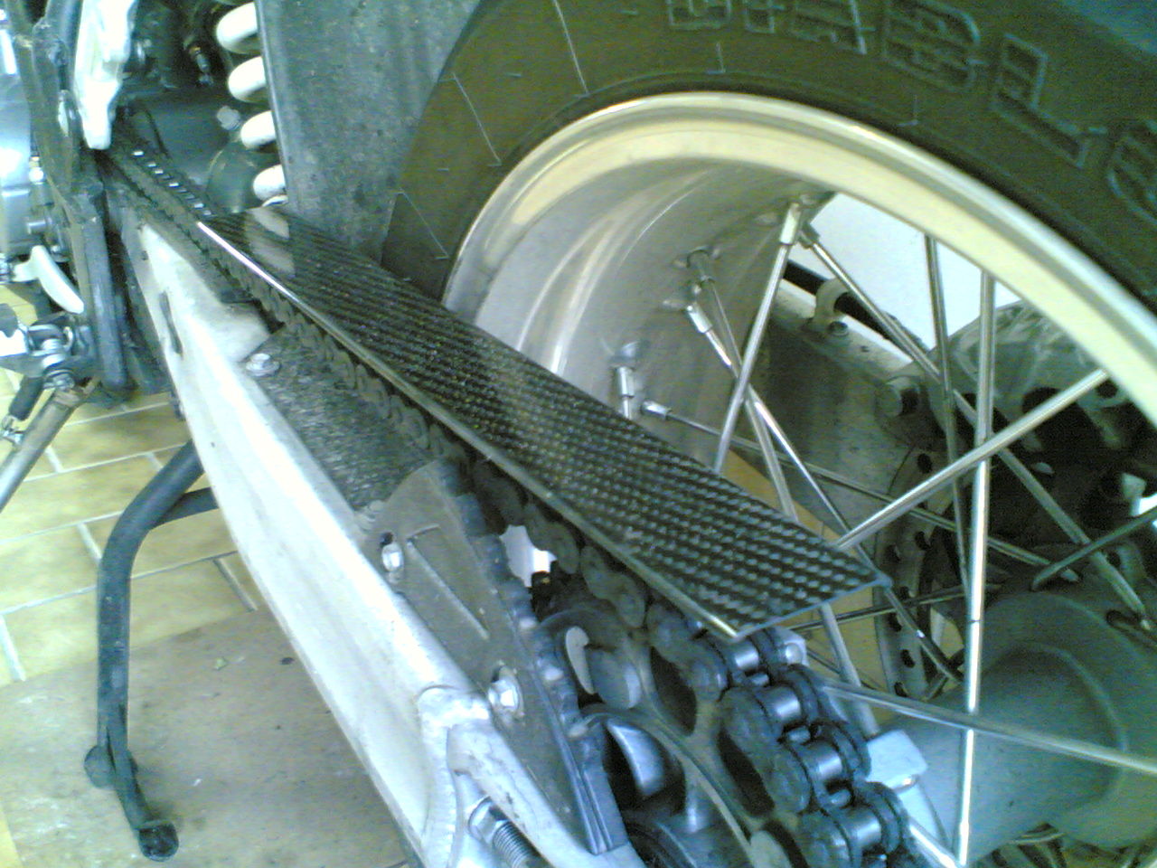Ansonsten hab ich noch nicht viele Umbauten ausser einer Lenkerhöhung, Niro Seiten-und Hauptständer, vorne Carbonkotflügel, Carbon Kettenschutz, kleine Carbon LED Blinker und eine grössere Trägerplatte aus Riffelblech.